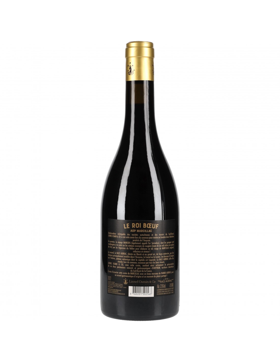 À l’instar de la cuvée portant le même nom et dédiée à la race Bazadaise, ce Roi bœuf se veut un hommage à la race Aubrac, connue des fins gourmets pour son excellente viande. Le Bœuf Fermier Aubrac est principalement élevé dans l'Aveyron, le Cantal et la Lozère.