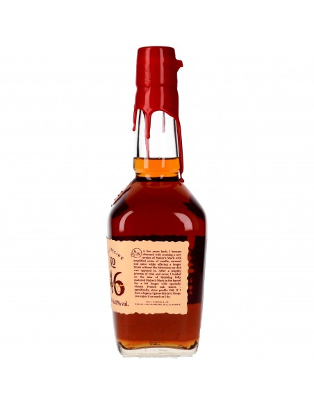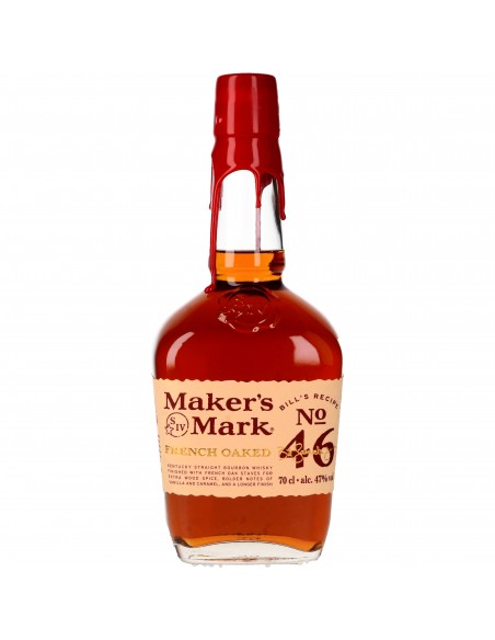 Elaboré à partir de maïs, d’orge et de blé, la recette originale du bourbon Maker’s Mark n’avait jamais été déclinée auparavant, pour la première fois en 50 ans la distillerie s’aventure hors des entiers battus. Le Maker’s Mark 46 est élevé en fûts modifiés, des douelles de chêne français bousinées ont été ajoutées puis le vieillissement rallongé, apportant des arômes riches et complexes, des notes épicées et vanillées.