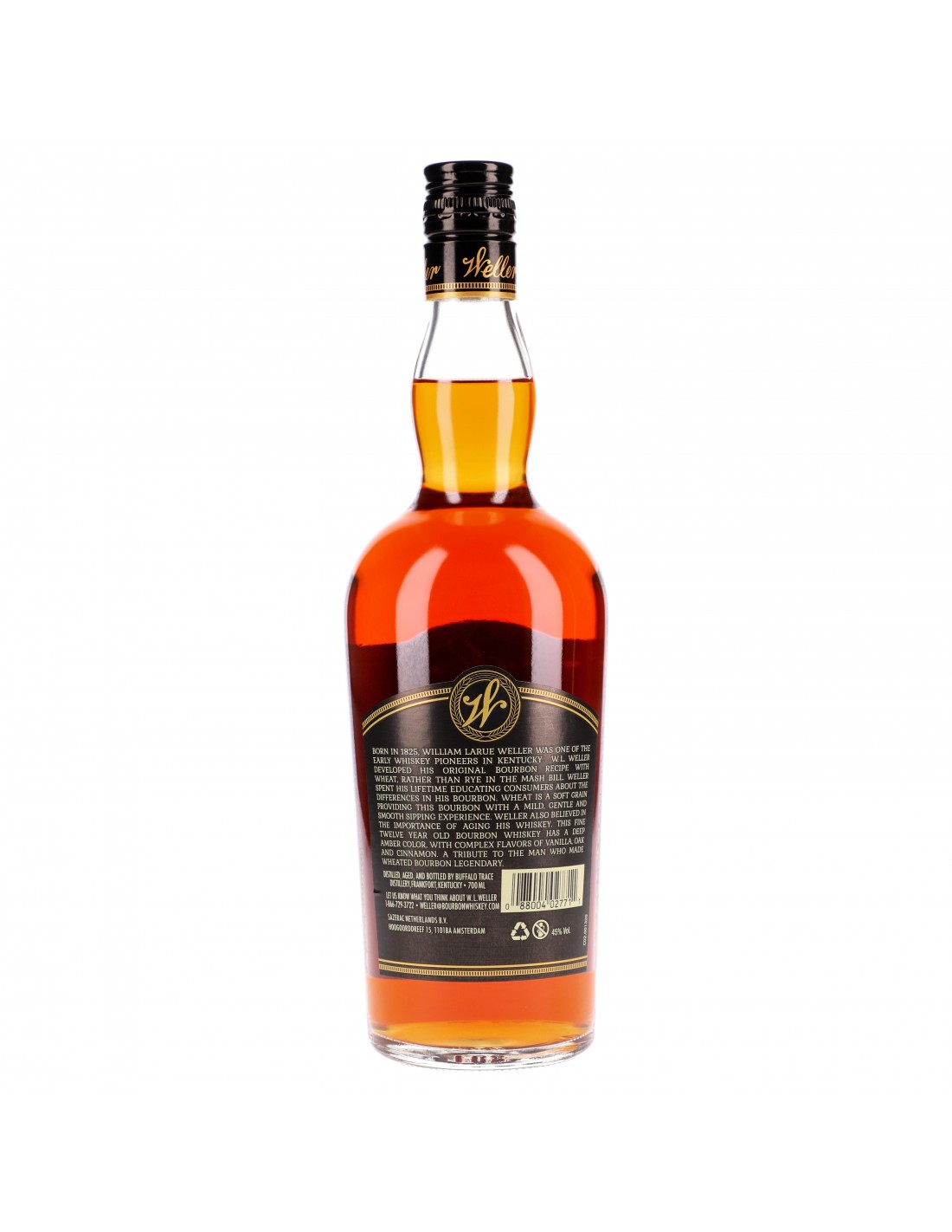 Distillé, vieilli et mis en bouteille par la distillerie Buffalo Trace dans le Kentucky, Weller est une référence incontestée pour les amateurs de Bourbon. Le fondateur de la marque, William Larue Weller, fut le premier à parier que le blé ferait un excellent bourbon. Celui-ci à vieilli 12 ans, soit bien plus que la plupart des bourbons disponibles sur le marché. Derrière sa couleur ambrée, Weller 12 ans délivre de saveurs douces et moelleuses de vanille, de chêne et de cannelle.