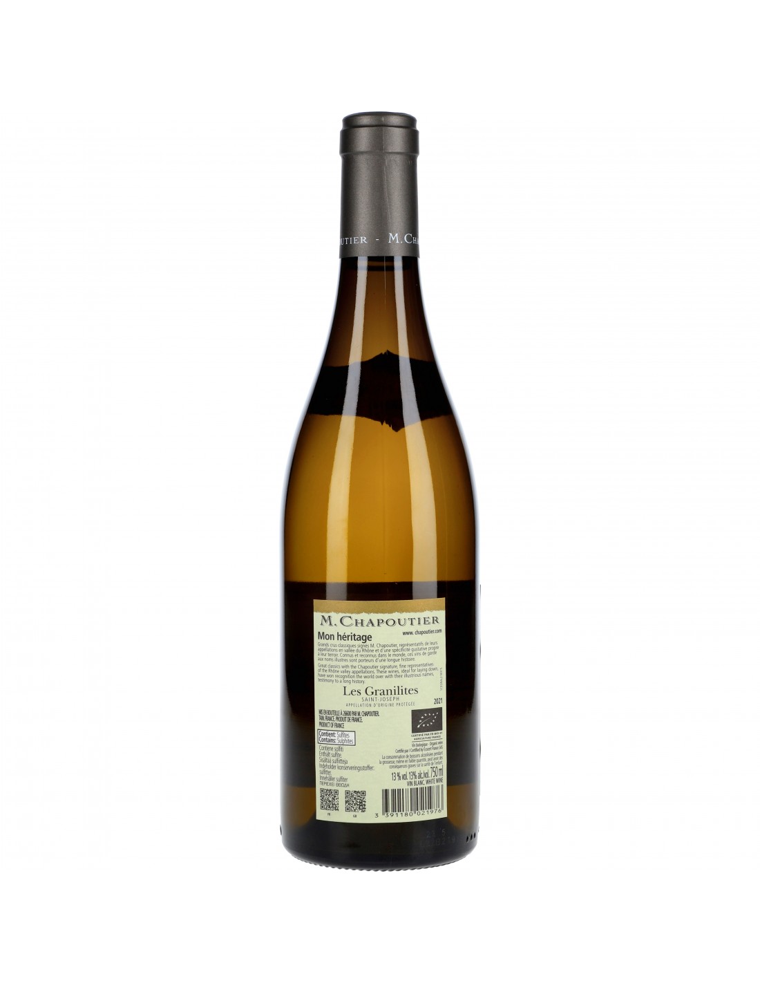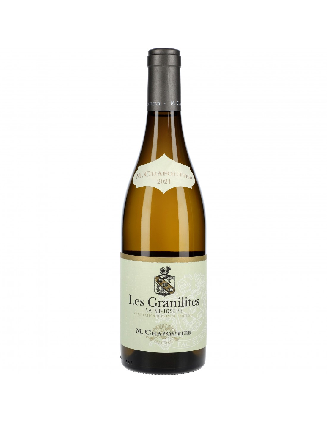 La Maison M. Chapoutier, fondée en 1808 L'une des plus anciennes et prestigieuses maisons de vin de la Vallée du Rhône Pionnière de la biodynamie dans la région Issu de sols granitiques, un Saint-Joseh minéral d'une grande élégance A servir entre 10 et 12°, sur poissons blancs ou coquilles saint-jacques