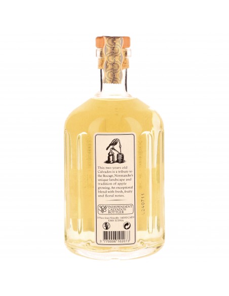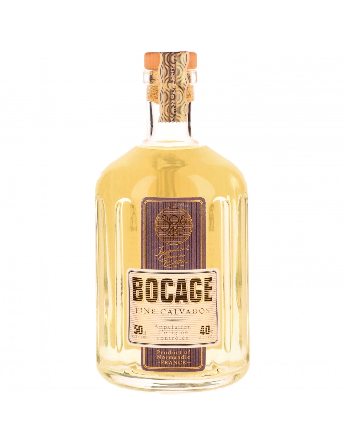 Calvados Fine Bocage rend hommage au bocage normand, ce paysage rural constitué de petits champs, un terroir auquel le Calvados doit sa qualité, préservée par les règles de l’appellation. Les producteurs sont tenus de fournir un minimum de 35% de pommes issues des vergers dits « hautes-tiges », l’arbre du bocage par excellence. Ce Calvados assemble trois lots de deux à trois ans d’âge, provenant de trois producteurs différents sur trois terroirs distincts. L’impact de l’élevage en fût de chêne est limité pour garder un caractère frais, floral et fruité.