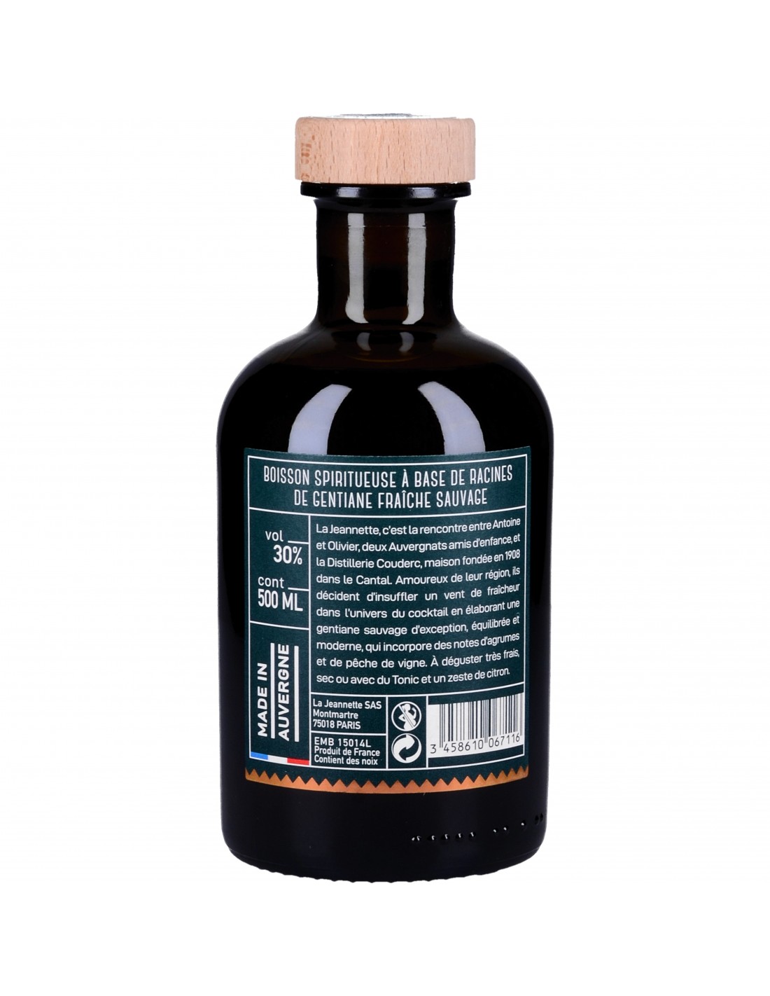 Quand deux amis d’enfance, deux auvergnats, s’associent avec la distillerie Couderc pour élaborer une gentiane sauvage de qualité premium. Pensée pour l’univers du Cocktail, La Jeannette est une boisson spiritueuse infusée à 30° et fabriquée en Auvergne. A déguster pur, bien frais, ou avec un Tonic et un zeste de citron.Fondée en 1908, à Aurillac dans le Cantal, la distillerie Couderc est spécialisée dans la production de gentiane. Sa production est régulièrement récompensée sur les concours internationaux.