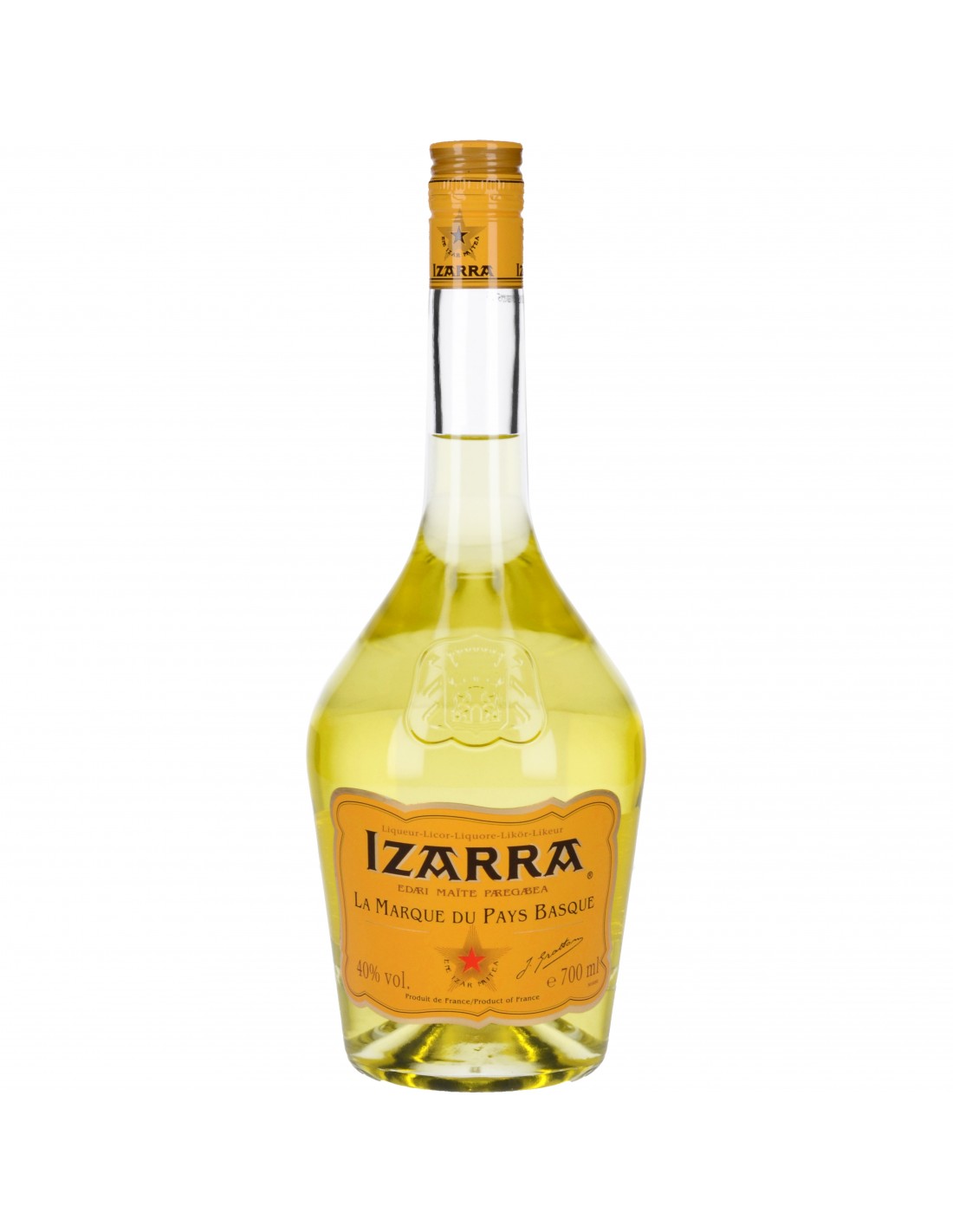 Izarra Jaune assemble de l’armagnac, du miel, différentes macérations de plantes aromatiques et d’épices, ainsi que de l’amande et de la noix.Créée en 1906 à Hendaye par le botaniste et pharmacien Joseph Grattau, une marque de liqueur qui nous vient du Pays basque. Izarra signifie « l'étoile » en langue basque.