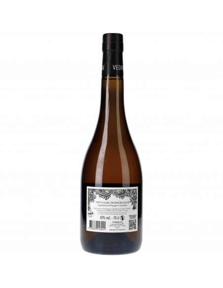 Après distillation en alambics des marcs de vins de Bourgogne, la maison Vedrenne laisse vieillir son eau-de-vie en fût de chêne de 3 à 6 ans avant embouteillage.