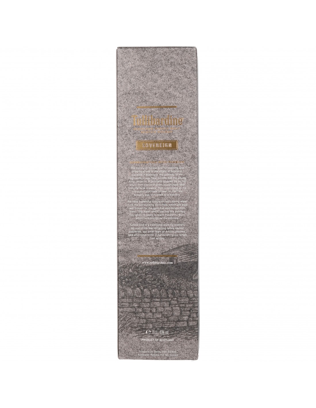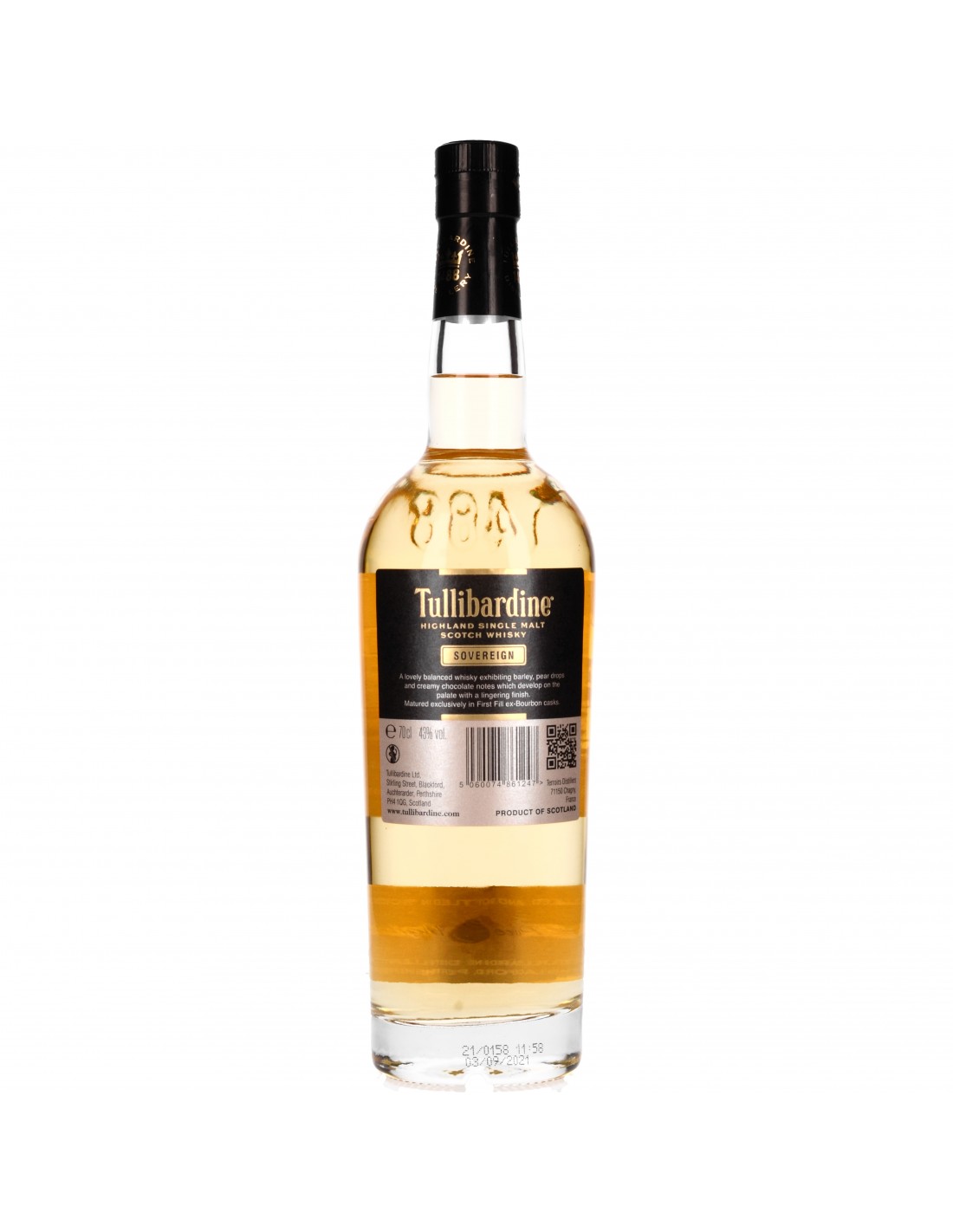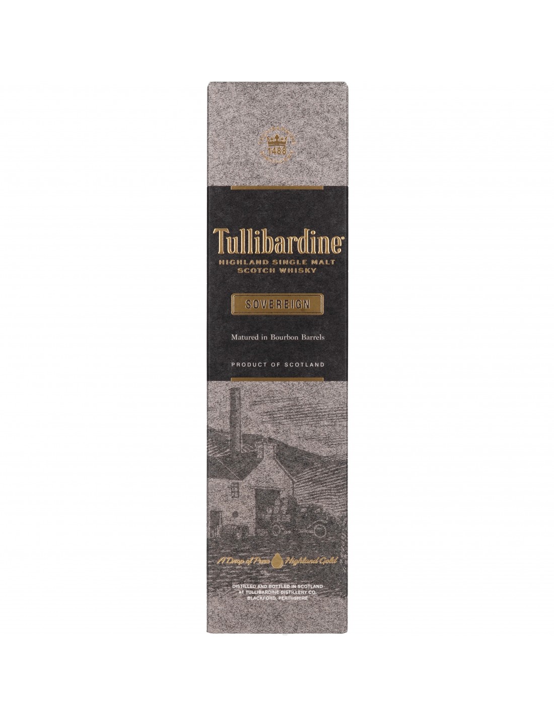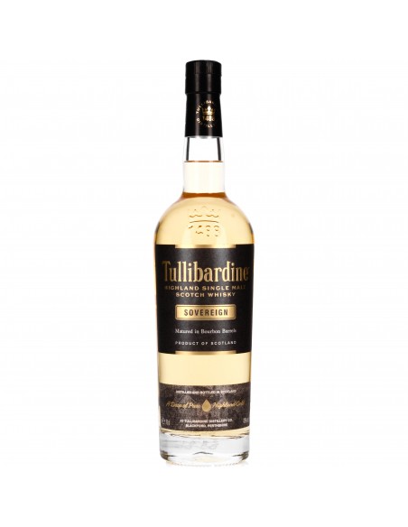 Elevé en ex-fûts de bourbon de premier remplissage, Tullibardine Sovereign est la signature de la distillerie, ce single malt très agréable brille par son caractère doux et facile à déguster."Nous arrivons au stade où Tullibardine est en train de devenir l'un des vrais grands singles malts d'Écosse". La Bible du whisky de Jim Murray, 2008.