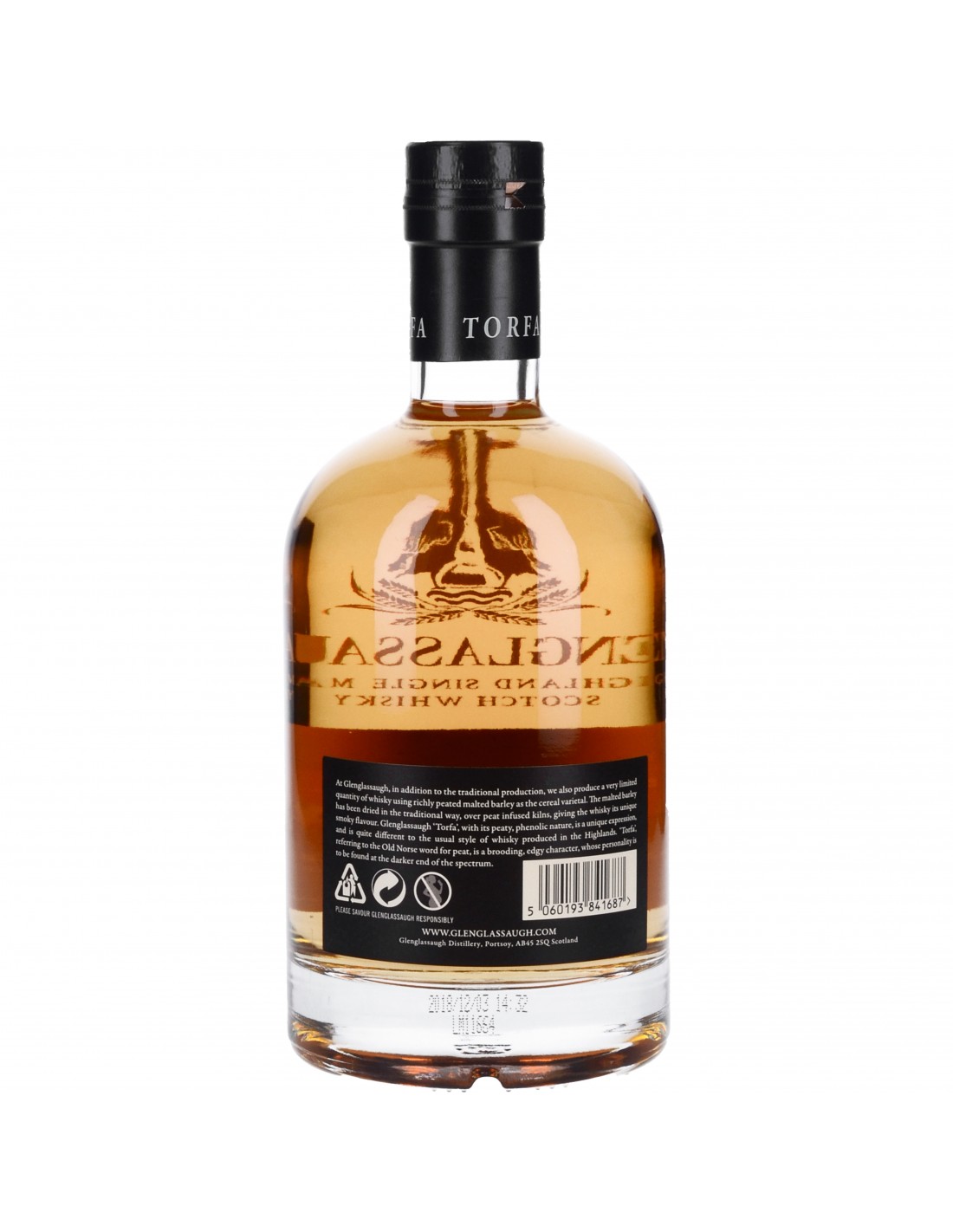 Après les versions Revival et Evolution, Torfa ajoute une nouvelle expression à la gamme de Glenglassaugh, un single malt vieilli en fût de bourbon de second remplissage pour ne pas écraser le caractère naturel du distillat. Confectionné à partir d’orge légèrement tourbée (20ppm) et embouteillé à 50%, Torfa n’insiste pas sur la fumée et préfère mettre en avant son caractère marin, qui souligne avec fraîcheur un côté plus fruité. Torfa signifie « tourbe » dans le langage parlé à l’époque des Vikings en Scandinavie.Glenglassaugh a été fondée par le colonel James Moir en 1875. Située en bord de mer à l'extrémité de la baie de Sandend, à la frontière du Speyside et des Highlands, la distillerie se forgera dès ses débuts une belle réputation. Restée inactive pendant une vingtaine d’années, Glenglassaugh reprend réellement vie en 2013 après son acquisition par la BenRiach Distillery Company. Grâce aux investissements réalisés, cette distillerie emblématique reprendra son activité en produisant de façon artisanale des distillats à partir d'orge écossaise de la plus haute qualité. Les vieillissements en fûts sélectionnés se déroulent dans des entrepôts côtiers.