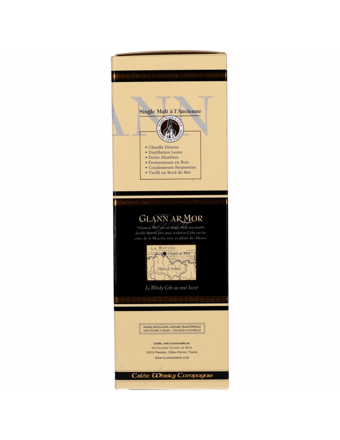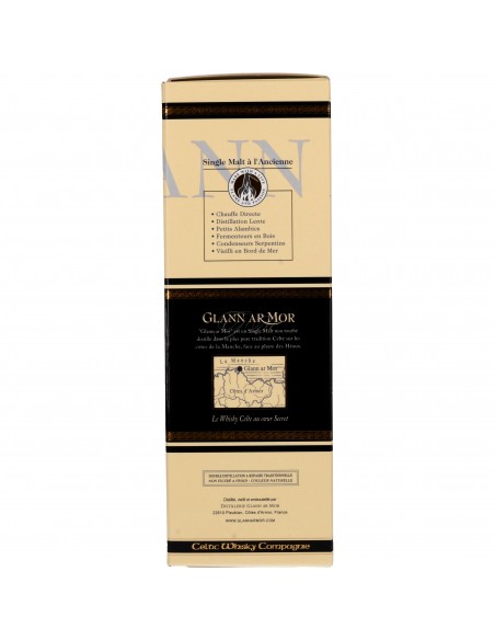 Vieilli en fûts de Bourbon, un Single Malt non tourbé produit par l’une des distilleries bretonnes les plus réputées. Élaboré à partir d’une ancienne variété d’orge appelée “Maris Otter Barley”, Glann ar Mor est le fruit d'une distillation lente dans deux petits alambics en forme d’oignon qui lui donnent un équilibre remarquable. De couleur naturelle, le distillat n’est pas filtré à froid et garde toute son authenticité. Le vieillissement se déroule dans des chais à quelques mètres de la mer.Glann ar Mor est une distillerie implantée à la pointe de la « Presqu’île Sauvage », au nord de la Bretagne. C’est tout naturellement que Martine et Jean Donnay ont choisi la belle langue bretonne pour nommer leur distillerie fondée en 1999, Glann ar Mor, traduisez « Bord de mer » en breton.