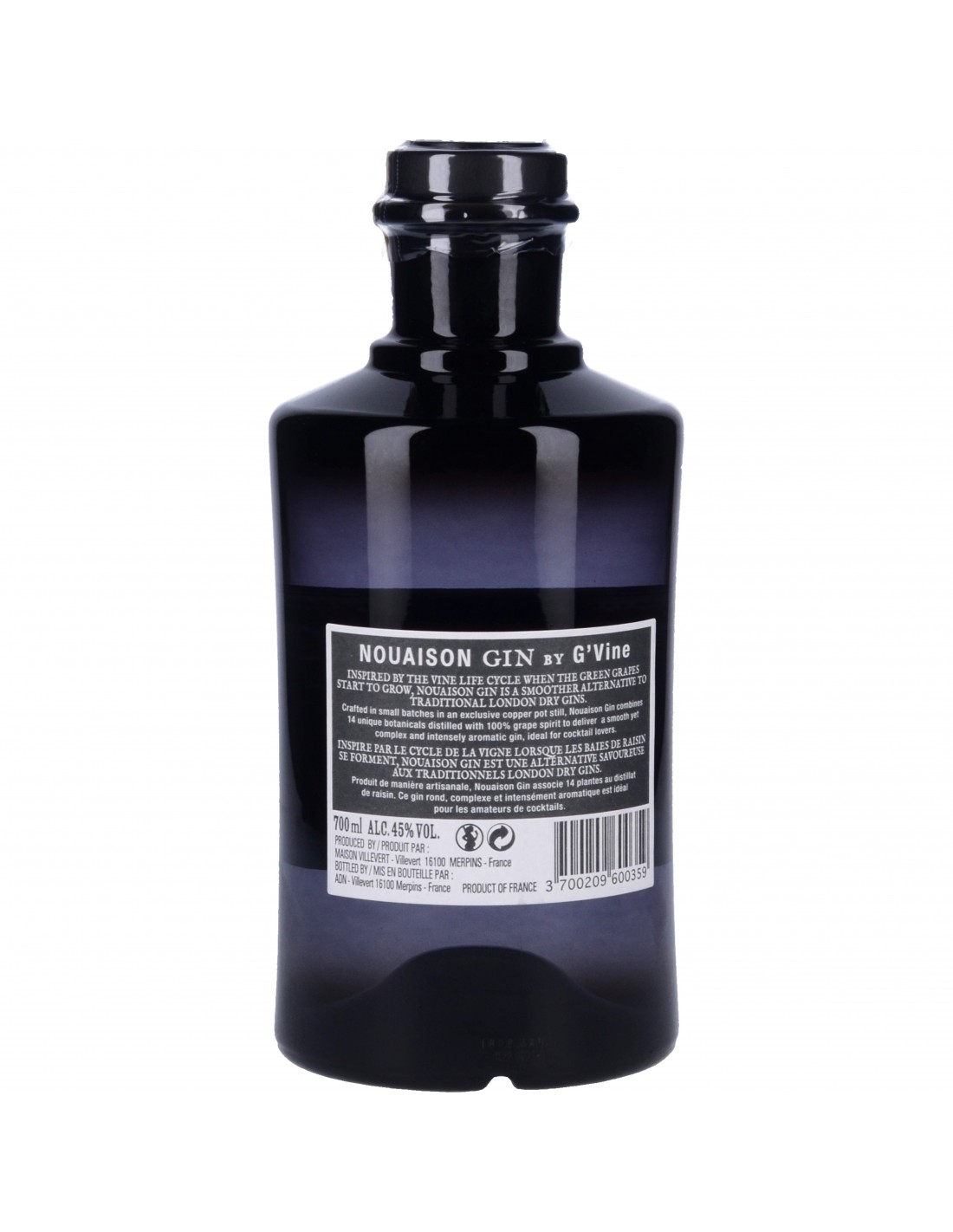 Produit artisanalement, un Gin Français pensé pour sublimer les cocktails. Un profil épicé mêlant le raisin et 14 plantes, les classiques comme que le genièvre, cardamome, gingembre, puis d’autres plus originales, bois de santal, bergamote, prune, poivre de Java et vétiver. Nouaison Gin est distillé à partir de raisins de la variété ugni blanc, provenant de la région de Cognac, l’utilisation de raisins du vignoble français est la marque de fabrique des gins G’Vine.
