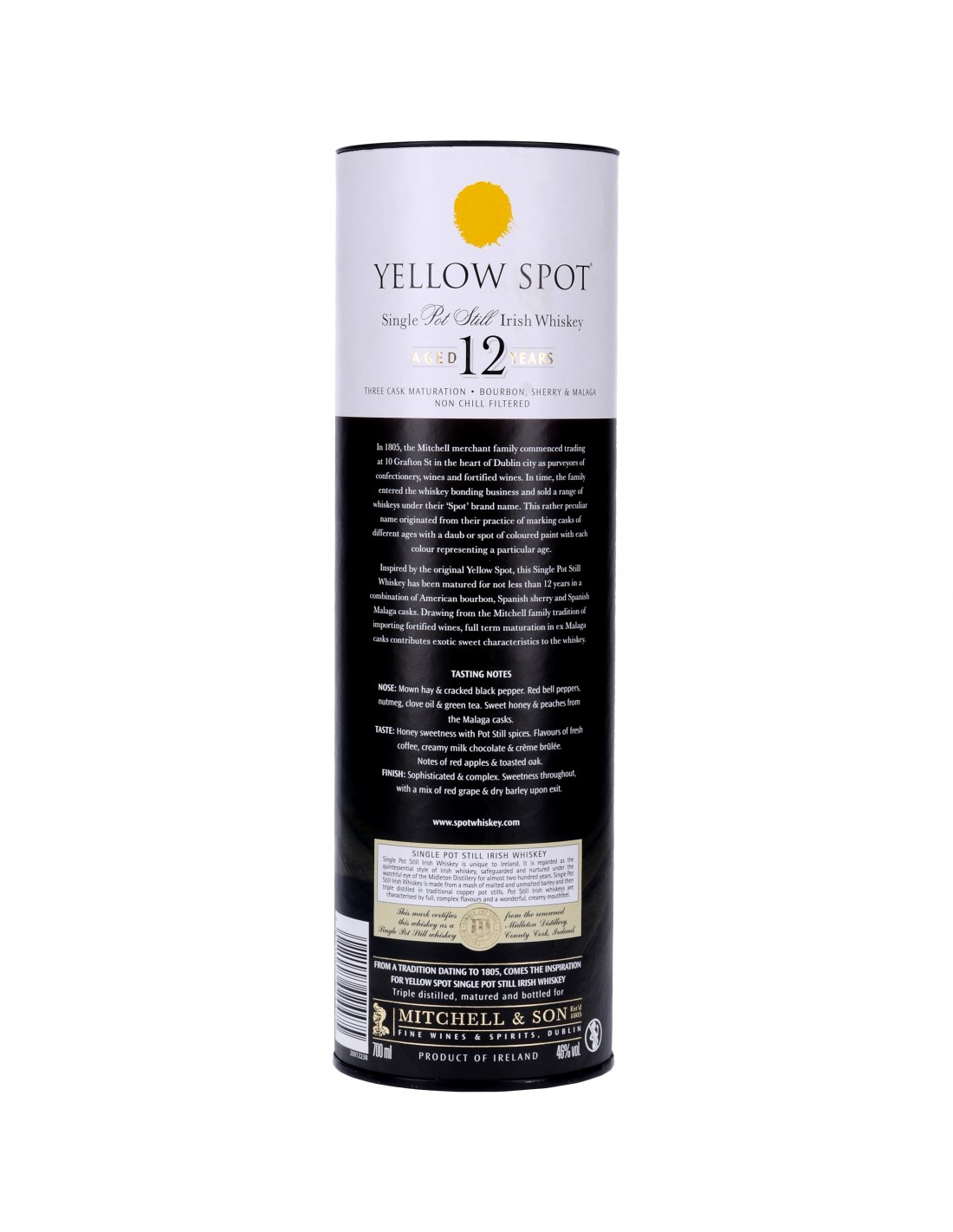 En 1805, la famille Mitchell vendait du vin et des confiseries dans le centre de Dublin. Plus tard, le commerce du whisky s’ajoutera à l’activité avec une marque maison nommée "Spot". Suivant l’âge des distillats la couleur de marquage des fûts changeait, Bleu pour le 8 ans, vert et rouge pour le 10 et 15, puis Jaune pour le 12 ans. La commercialisation du Yellow Spot Original s'est arrêté dans les années 1960 avant de renaître grâce à la distillerie Midelton.