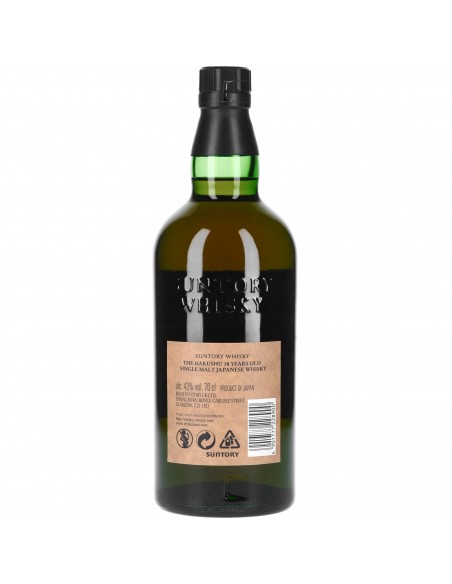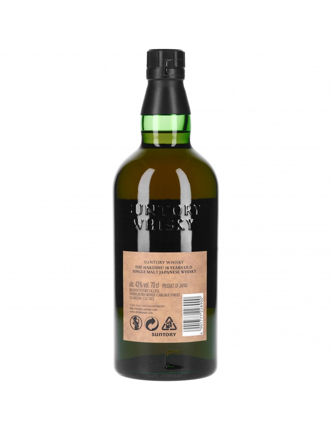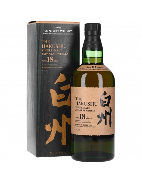 À côté du Yamazaki 18 ans, encore plus populaire (et rare), le Hakushu 18 ans est considéré comme l'un des meilleurs whiskies de la maison Suntory. D’un caractère herbacé, vif et légèrement tourbé, il est le plus écossais des deux références et conserve la préférence des amateurs de malts du Speyside et des Highlands. Élaboré à partir de malt tourbé et non tourbé, Hakushu vieillit 18 ans en fûts de bourbon et de sherry de premier remplissage. Non filtré à froid, couleur naturelle.