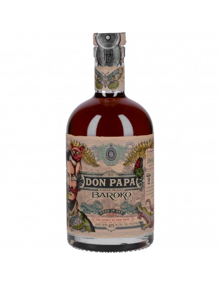 Cette cuvée Baroko est un rhum de mélasse vieilli plusieurs années en fûts de chêne américain, filtré à froid et embouteillé à 40°. Moins sec que le Don Papa classique, il se distingue par sa douceur et ses arômes marqués de confiserie.