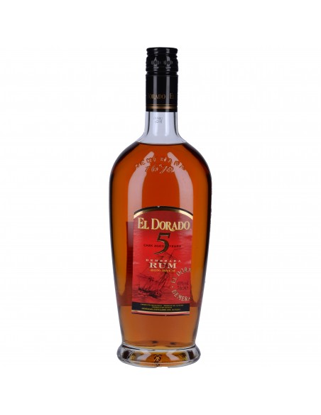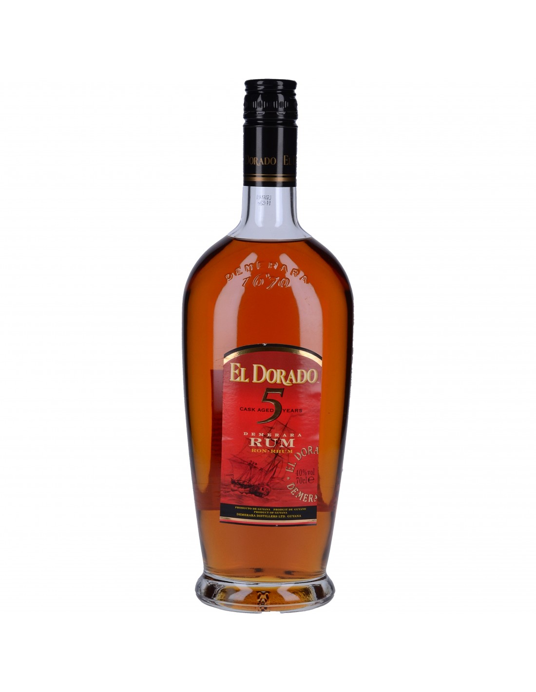 Provenant de la région de Demerara, El Dorado Rum vieilli en fûts de chêne américain (bourbon) au minimum cinq ans, sous le climat chaud et humide de la Guyane. Cet assemblage de caractère mélange des rhums distillés dans deux alambics : le " Savalle Uitvlugt " et un alambic en bois plus classique de type Coffey.