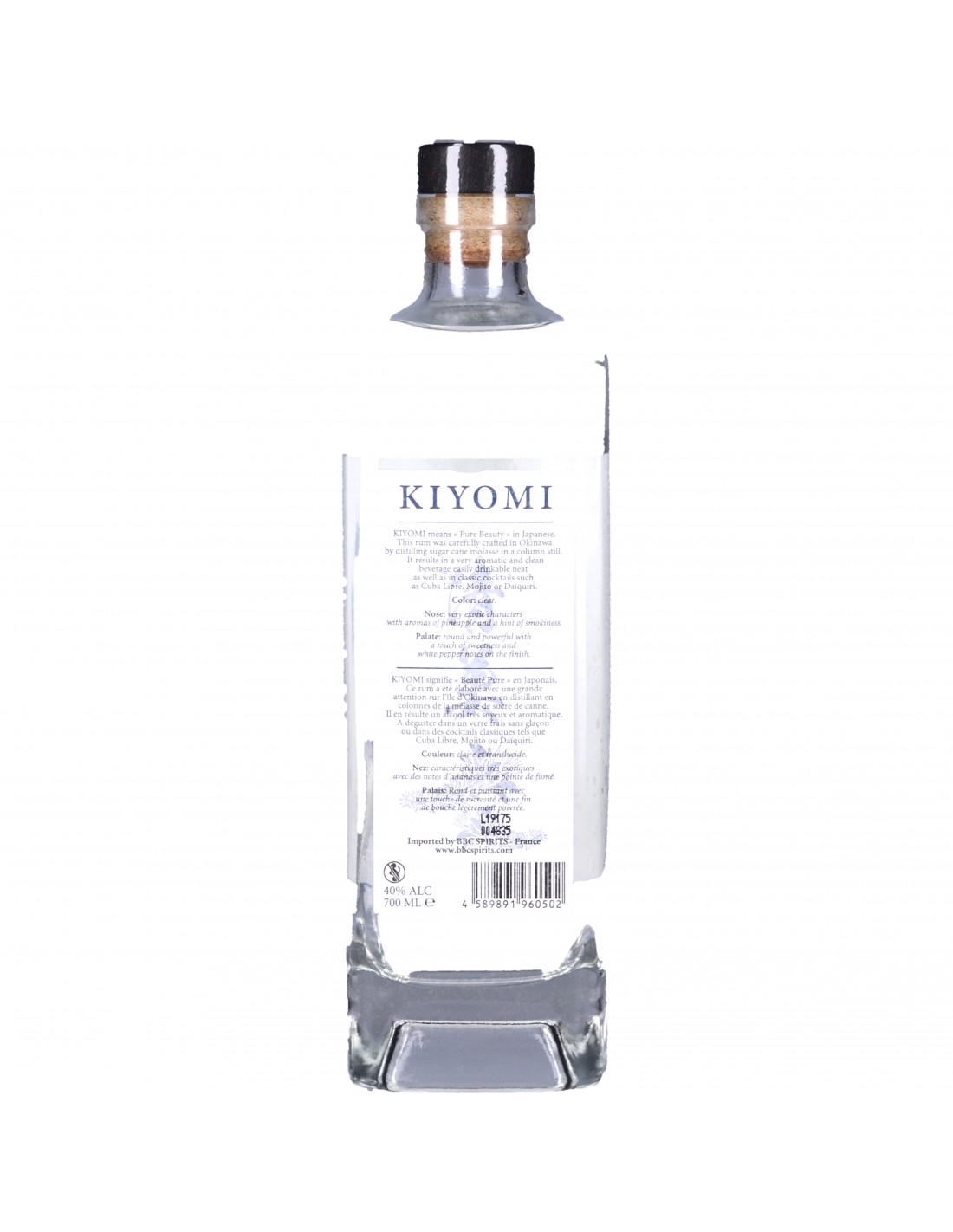 Ce rhum blanc nous vient de Nago City sur l’île d’Okinawa. La canne à sucre pousse localement sous un climat tropical, sur un sol riche en minéraux apportant de la minéralité et de la salinité en bouche. La fermentation lente permet de développer une aromatique intense. Kiyomi signifie "Beauté pure" en Japonais.