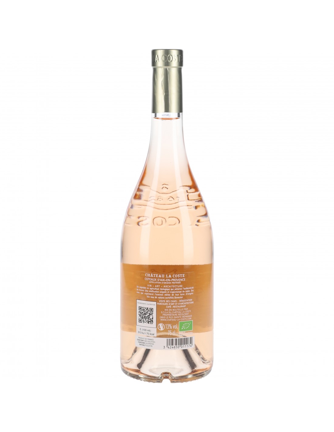 Château La Coste, situé près d’Aix en Provence, allie richesse historique et tradition viticole depuis l’époque romaine. Le domaine s’étend sur 200 hectares, dans un paysage de vignes, cyprès, pins parasols, oliviers et chênes au cœur duquel se tient la Bastide de 1682 au style palladien.Château La Coste prend soin de son terroir et a fait de la culture biologique sa priorité, s’inspirant des règles de la biodynamie, et privilégiant la qualité à la quantité des rendements.