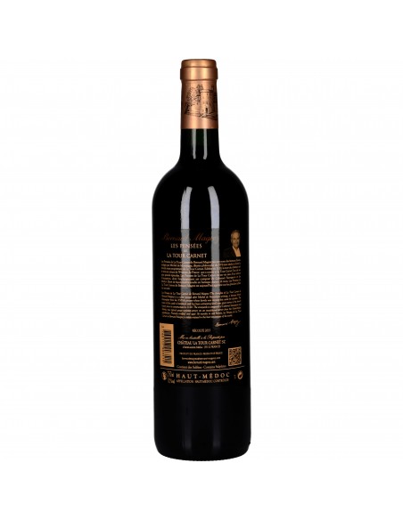 Le second vin du Château La Tour Carnet, Quatrième Grand Cru Classé 1855 en appellation Haut-Médoc. Vendanges manuelles en petites cagettes avec un premier tri à la vigne. Macération pré-fermentaire à froid. Pigeages manuels. Elevage en fût de chêne pendant 15 mois.