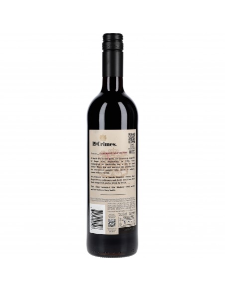 L'histoire des "19 Crimes", ou comment des criminels sont devenus des colons. Fin XVIIIe, les citoyens britanniques coupables d'au moins un des 19 crimes punissables "by transportation », étaient condamnés à mort ou au bannissement en Australie. Pionniers d'une colonie frontalière, ils ont forgé un nouveau pays et une nouvelle vie, brique par brique. Ce vin honore l'histoire qu'ils ont écrite et la culture qu'ils ont développé. Environ 20% des personnes bannies en Australie étaient des femmes.