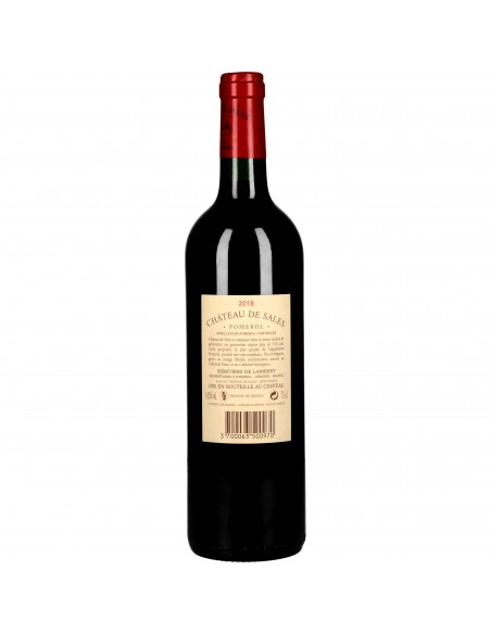 Plus grand domaine de l’AOC Pomerol et propriété de la famille de Lambert depuis plus de 550 ans transmise de génération en génération depuis son acquisition à la fin du 15ème siècle par Bertrand de Sauvanelle (les changements de nom n’étant dus qu’aux transmissions par les femmes), le Château de Sales fait preuve d’un sacré héritage humain et viticole. Au début du 17ème siècle, ses descendants font construire le château, une chartreuse inchangée à ce jour. Saisi par l’état, le château sera pillé pendant la Révolution et le domaine confisqué, mais à force de ténacité, le domaine reviendra dans le giron familial. Dirigé de 1949 à 1985 par l’emblématique Henri de Lambert, le domaine connait un essor fulgurant. Pionnier de la mécanisation grâce à l’arrivée des tracteurs américains avec le plan Marshall, il modernise le château et augmente la surface de culture de 28 à 58 hectares. Sous son impulsion, alors qu’il est président du syndicat viticole de Pomerol, l’appellation connait une notoriété fulgurante. Son fils Bruno dirigera l’exploitation les 35 années suivantes. S’il ouvre les portes de la propriété aux visiteurs, il refuse de céder aux modes et s’emploie à respecter et valoriser le terroir de Sales pour continuer de faire un vin tout en rondeur. Depuis 2017, la 25ème génération a créé une société d’exploitation regroupant les 14 cousins de la famille qui est dirigée par Marine Treppoz, l’une d’entre eux. Vincent Montigaud, qui a passé 23 ans chez Baron Philippe de Rothschild, dont 16 ans à la tête du Domaine de Baronarques, a été nommé directeur de l'exploitation. Accompagné dans leurs choix par Frédéric Laborde, directeur technique, Jean-Claude Berrouet, œnologue conseil et Gilles Rey, conseiller viticole, les méthodes de production évoluent. Avec ses 47,5 hectares plantés en merlot, cabernet sauvignon, et cabernet franc (sur un terroir de petites graves et de sables chauds contenant des oxydes de fer) gérés en agriculture raisonnée, Château de Sales est plus que jamais l’une des propriétés les plus emblématiques de l’appellation Pomerol. Les raisins sont récoltés à la main, passent par deux tries successives et sont légèrement foulés avant d’être mis en fermentation dans des cuves béton thermo-régulées. L’assemblage, très précis, propose une belle touche de modernité. L’élevage se fait avec 15% de barriques neuves en chêne français pour 85% de barriques de 1 à 3 ans pendant 12 mois. Toujours très équilibré et rond, Château de Sales fait plus que jamais honneur à sa réputation d’excellence et de tradition. Le Château de Sales produit un second vin, le Château Chantalouette.