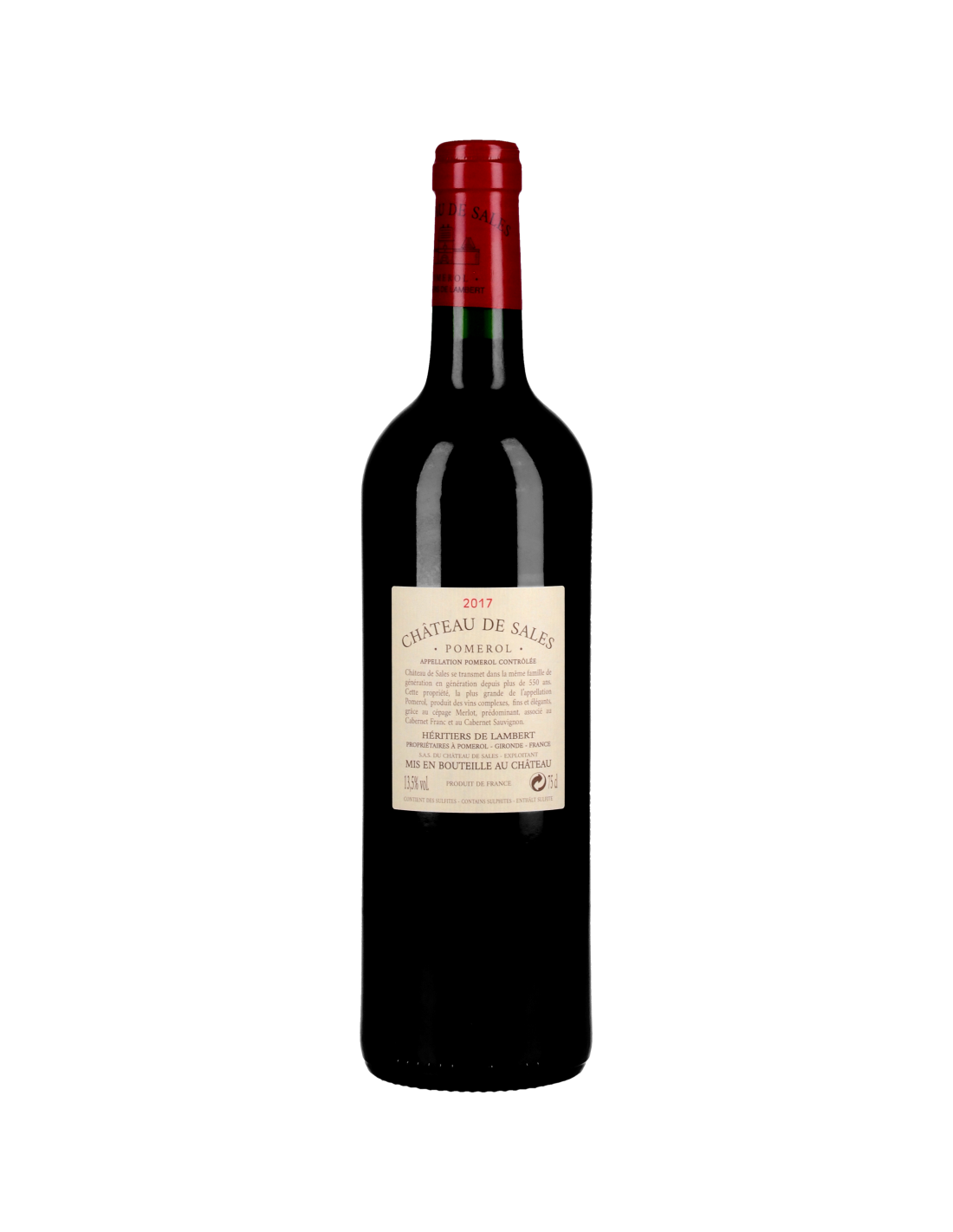Plus grand domaine de l’AOC Pomerol et propriété de la famille de Lambert depuis plus de 550 ans transmise de génération en génération depuis son acquisition à la fin du 15ème siècle par Bertrand de Sauvanelle (les changements de nom n’étant dus qu’aux transmissions par les femmes), le Château de Sales fait preuve d’un sacré héritage humain et viticole. Au début du 17ème siècle, ses descendants font construire le château, une chartreuse inchangée à ce jour. Saisi par l’état, le château sera pillé pendant la Révolution et le domaine confisqué, mais à force de ténacité, le domaine reviendra dans le giron familial. Dirigé de 1949 à 1985 par l’emblématique Henri de Lambert, le domaine connait un essor fulgurant. Pionnier de la mécanisation grâce à l’arrivée des tracteurs américains avec le plan Marshall, il modernise le château et augmente la surface de culture de 28 à 58 hectares. Sous son impulsion, alors qu’il est président du syndicat viticole de Pomerol, l’appellation connait une notoriété fulgurante. Son fils Bruno dirigera l’exploitation les 35 années suivantes. S’il ouvre les portes de la propriété aux visiteurs, il refuse de céder aux modes et s’emploie à respecter et valoriser le terroir de Sales pour continuer de faire un vin tout en rondeur. Depuis 2017, la 25ème génération a créé une société d’exploitation regroupant les 14 cousins de la famille qui est dirigée par Marine Treppoz, l’une d’entre eux. Vincent Montigaud, qui a passé 23 ans chez Baron Philippe de Rothschild, dont 16 ans à la tête du Domaine de Baronarques, a été nommé directeur de l'exploitation. Accompagné dans leurs choix par Frédéric Laborde, directeur technique, Jean-Claude Berrouet, œnologue conseil et Gilles Rey, conseiller viticole, les méthodes de production évoluent. Avec ses 47,5 hectares plantés en merlot, cabernet sauvignon, et cabernet franc (sur un terroir de petites graves et de sables chauds contenant des oxydes de fer) gérés en agriculture raisonnée, Château de Sales est plus que jamais l’une des propriétés les plus emblématiques de l’appellation Pomerol. Les raisins sont récoltés à la main, passent par deux tries successives et sont légèrement foulés avant d’être mis en fermentation dans des cuves béton thermo-régulées. L’assemblage, très précis, propose une belle touche de modernité. L’élevage se fait avec 15% de barriques neuves en chêne français pour 85% de barriques de 1 à 3 ans pendant 12 mois. Toujours très équilibré et rond, Château de Sales fait plus que jamais honneur à sa réputation d’excellence et de tradition. Le Château de Sales produit un second vin, le Château Chantalouette.