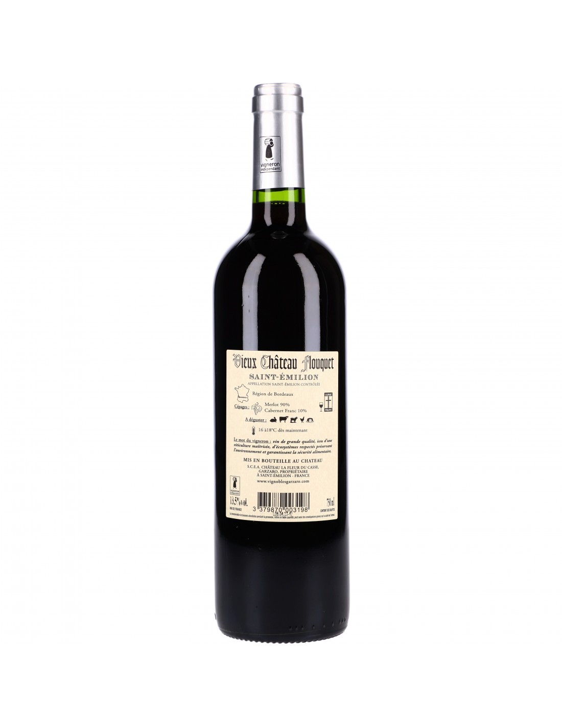 Vieux Château Flouquet est un saint-émilion né de vignes de 40 ans, plantées sur des coteaux argilo-sablonneux avec présence de calcaire en sous-sol. Classique au sens le plus noble du terme, ce vin est le fruit d’une vinification traditionnelle sans sulfites ajoutés. La vendange est triée et intégralement éraflée. Le choix d’une longue cuvaison permet d'extraire le maximum de tanins et de richesse organoleptique. Dominant dans l’assemblage, le merlot enrobe de ses tanins fins et charnus, une part structurante de cabernet-sauvignon.Médaille d’Argent au Concours International Lyon 2023
