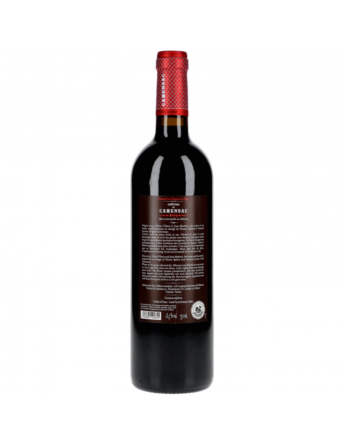 S’il est difficile de dater la première production de vin, on sait que la chartreuse située sur la propriété a été édifiée au 18ème siècle par la famille Popp. Elevé au rang de 5ème Cru Classé du Médoc en 1855, le Château Camensac fut détenu par la famille de La Grandière de Tournadre avant d’être revendu aux Cuvelier, propriétaires de la maison de négoce éponyme juste avant la Première Guerre Mondiale. Le Château de Camensac, dont le nom signifie chemin de l’eau en ancien français, est situé sur la commune de Saint-Laurent-du-Médoc, en appellation Haut-Médoc. Son vignoble de 75 hectares, planté en cabernet sauvignon et merlot, est constitué de magnifiques coteaux de fines graves profondes qui reposent sur des argiles alios. Rachetée en 1964 par la famille Forner, déjà propriétaires de Marqués de Càceres (un vin de grande renommée de la Rioja) et du Château Larose-Trintaudon, l’ensemble de la propriété a bénéficié d’une rénovation poussée. Après avoir déterminé un plan de replantation du vignoble, installé des équipements de production dernier cri et réaménagé les bâtiments, les nouveaux propriétaires ont réussi à ramener le Château Camensac sur son terrain de jeu légitime. Repris en 2005 par Jean Merlaut et Céline Villars-Foubet, respectivement fils et petite fille de Jacques Merlaut, ami proche d’Enrique Forner initiateur et actionnaire minoritaire lors de l’achat de Camensac, le domaine est aujourd’hui géré par l’équipe de Chasse-Spleen et conseillé par l’œnologue Eric Boissenot. La durée de cuvaison est décidée selon les parcelles, pouvant aller au-delà de 25 jours pour optimiser le rythme d’extraction, la fermentation malo-lactique se fait en fûts et la durée d’élevage varie entre 17 à 20 mois. Grâce à une nouvelle salve d’investissements, le Château Camensac dispose aujourd’hui d'un outil lui permettant d’optimiser encore sa qualité. Les derniers millésimes confirmant des progrès substantiels, le Château Camensac est désormais sur la liste des crus qui pourraient prochainement devenir moins accessibles. C’est donc le moment opportun pour l’approcher si ce n’est pas encore fait ! Raffiné, riche et soyeux, le Château Camensac est exubérant mais très plaisant. Complexe et harmonieux, il est aussi très constant. La diversité et la richesse des terroirs permet la production d’un second vin, La Closerie de Camensac, souple et agréablement appuyé par le bois et de deux autres vins : Le Bailly de Camensac, un vin puissant qui offre un excellent rapport qualité-prix et Second de Camensac, un vin ample et fruité avec des notes d’agrumes et de vanille.