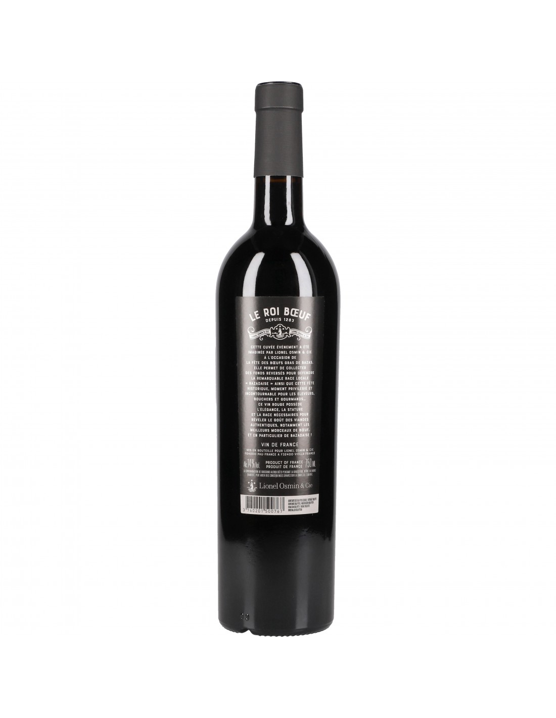 L’origine de la fête des bœufs gras remonte à l’an 1283. Comme au Moyen Age, les plus beaux bovidés de la race Bazadaise défilent en musique devant des milliers de spectateurs dans les rues de Bazas (Gironde), l’une des premières cités d’Aquitaine. En l’honneur des somptueux « Bazadais », Lionel Osmin crée une cuvée en partenariat avec Michel Guérard, le célèbre chef cuisinier triplement étoilé au guide Michelin. Elevage 16 mois en fûts de chêne dont 25% de bois neuf.
