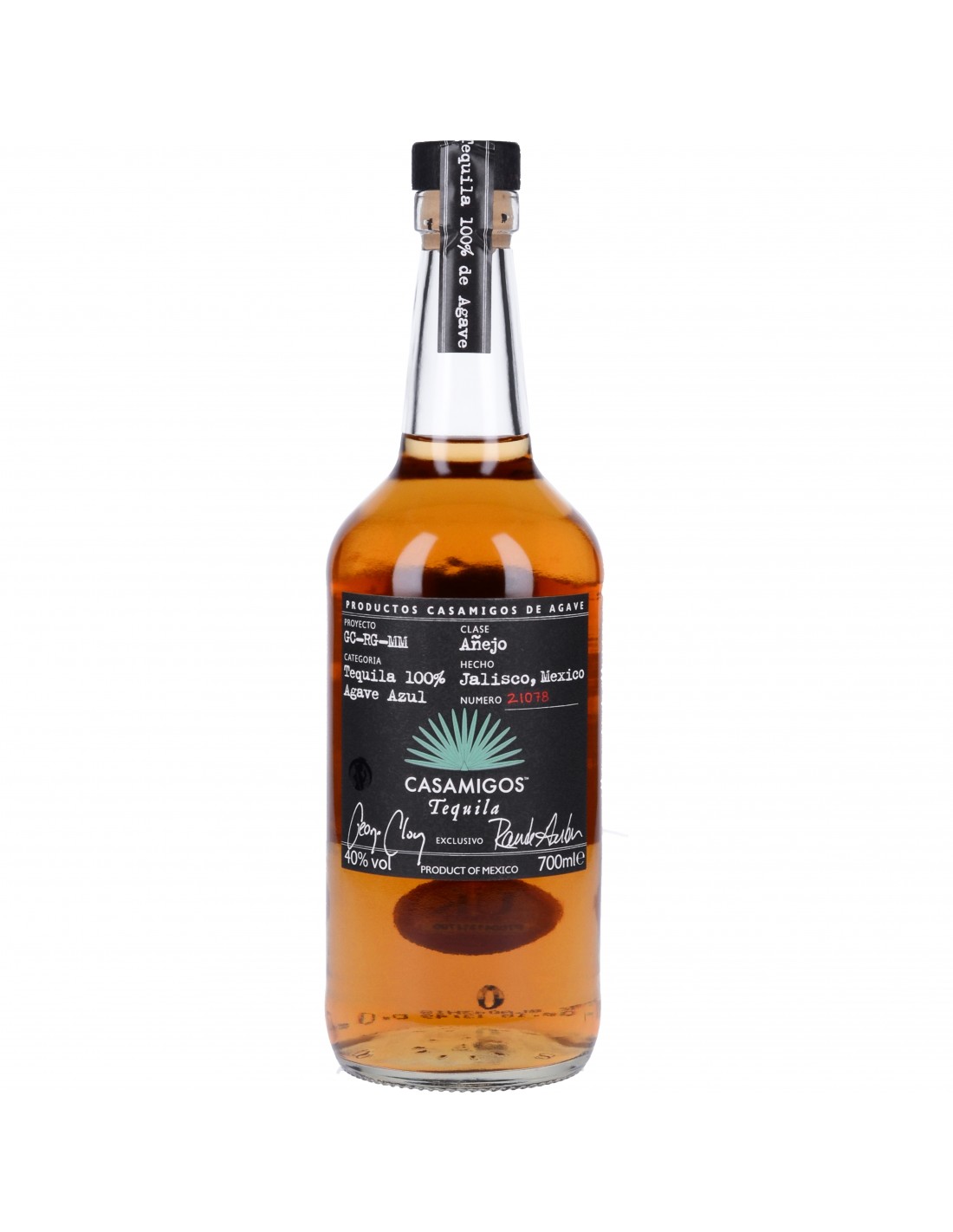 Casamigos Tequila Anejo est élaborée à partir de 100% d’agave Blue Weber, cultivé sur les sols argileux des hauts plateaux de Jalisco, au Mexique. Le goût unique de Casamigos résulte d’une cuisson douce en four traditionnel pendant 72 heures et d'une fermentation à l’aide d’une levure spéciale, 80 heures au lieu des 48 heures couramment pratiquées. Vieillissement 14 mois en fût de chêne blanc américain.